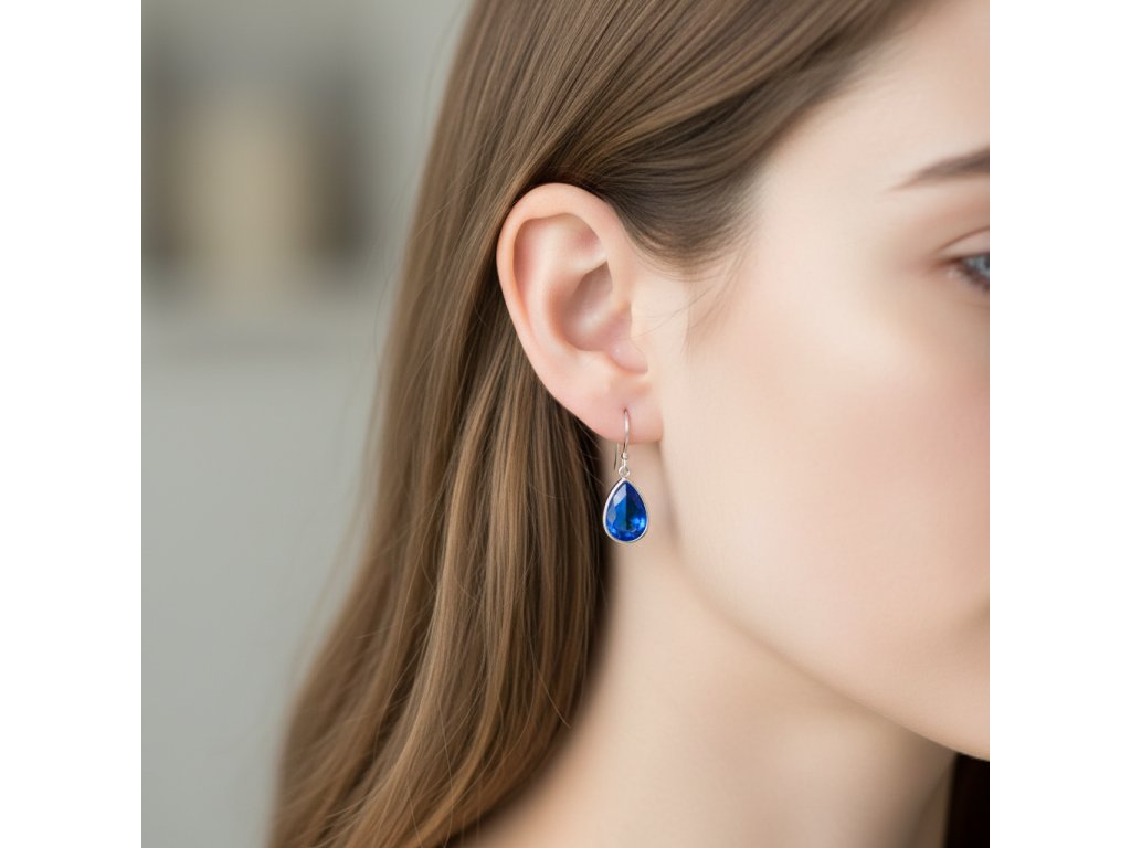 Blue náušnice slza z chirurgickej ocele + Darčekové balenie