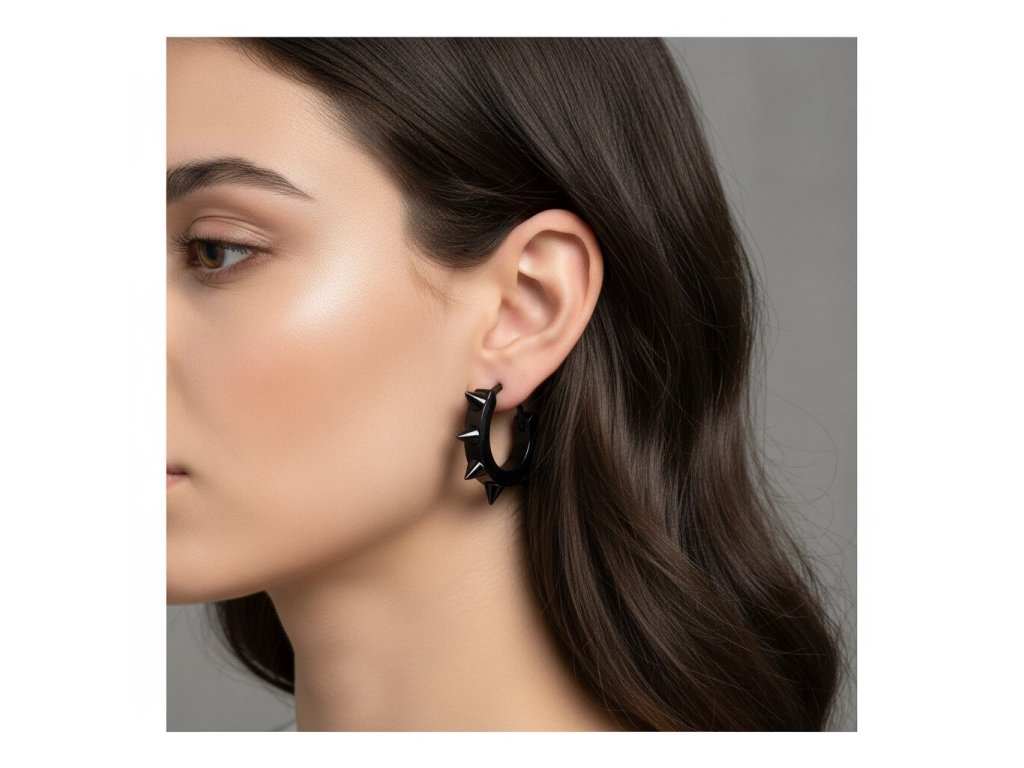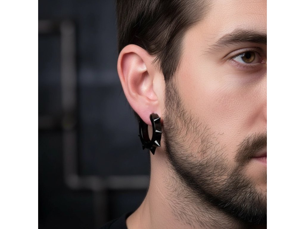 Čierne oceľové náušnice - krúžky s ostňami + Darčekové balenie