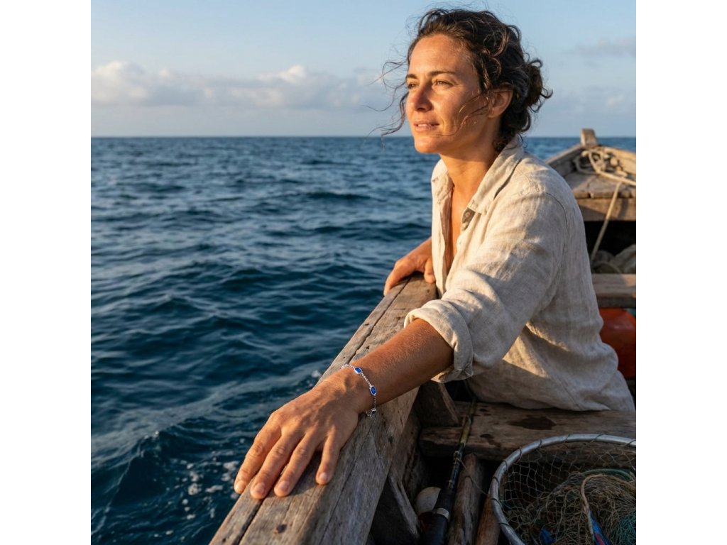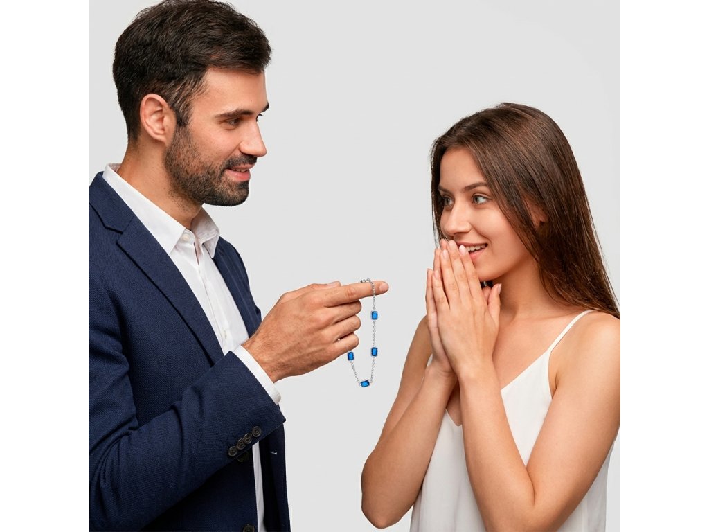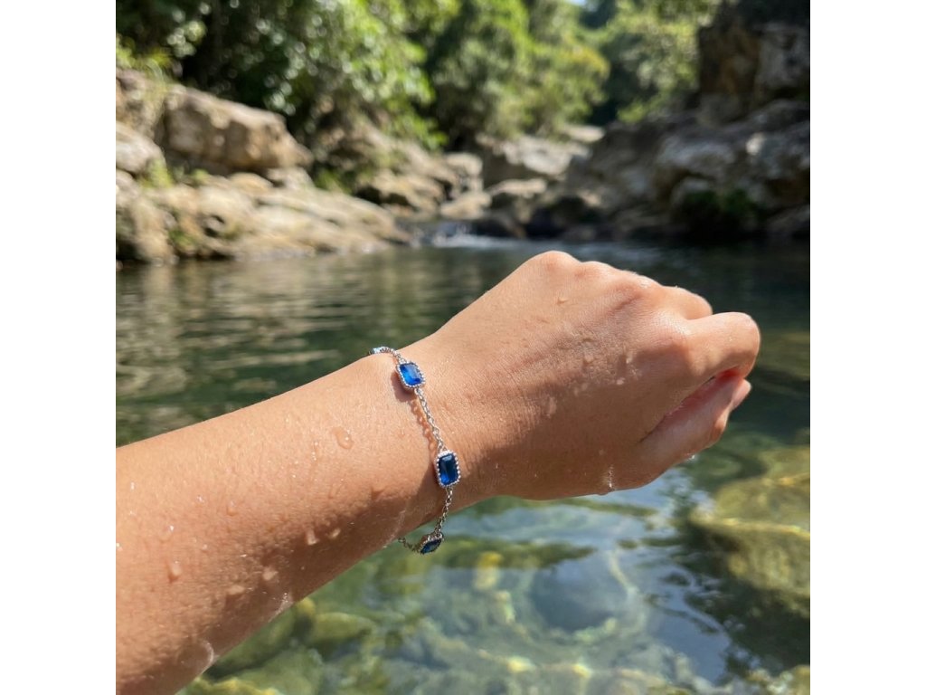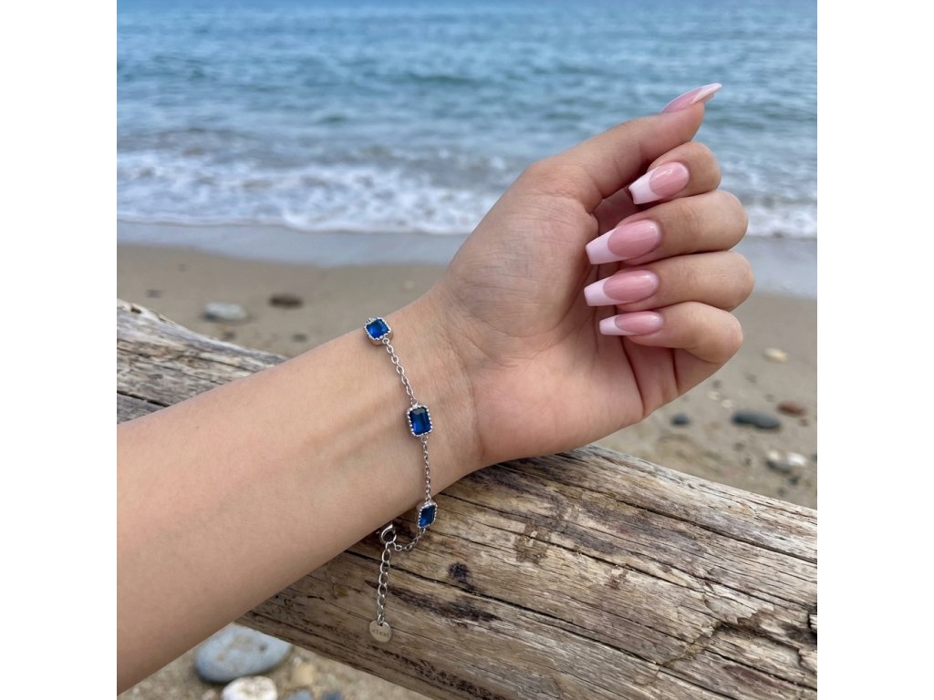 Dámsky náramok strieborný z chirurgickej ocele modrý Akaha + Darčekové balenie