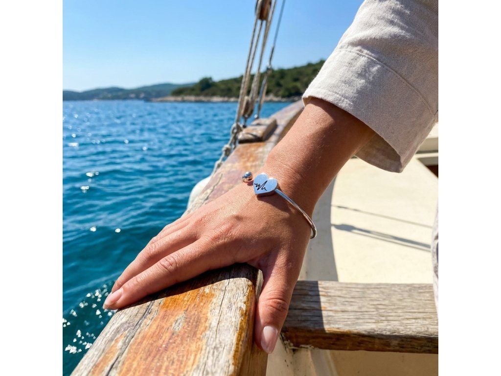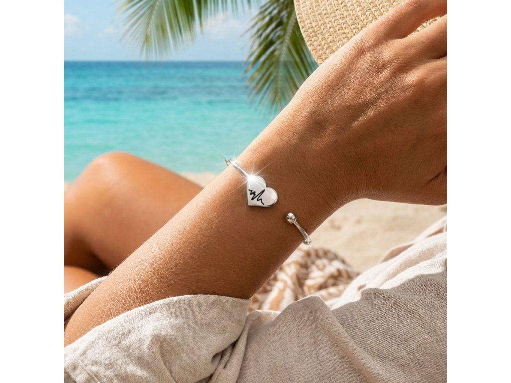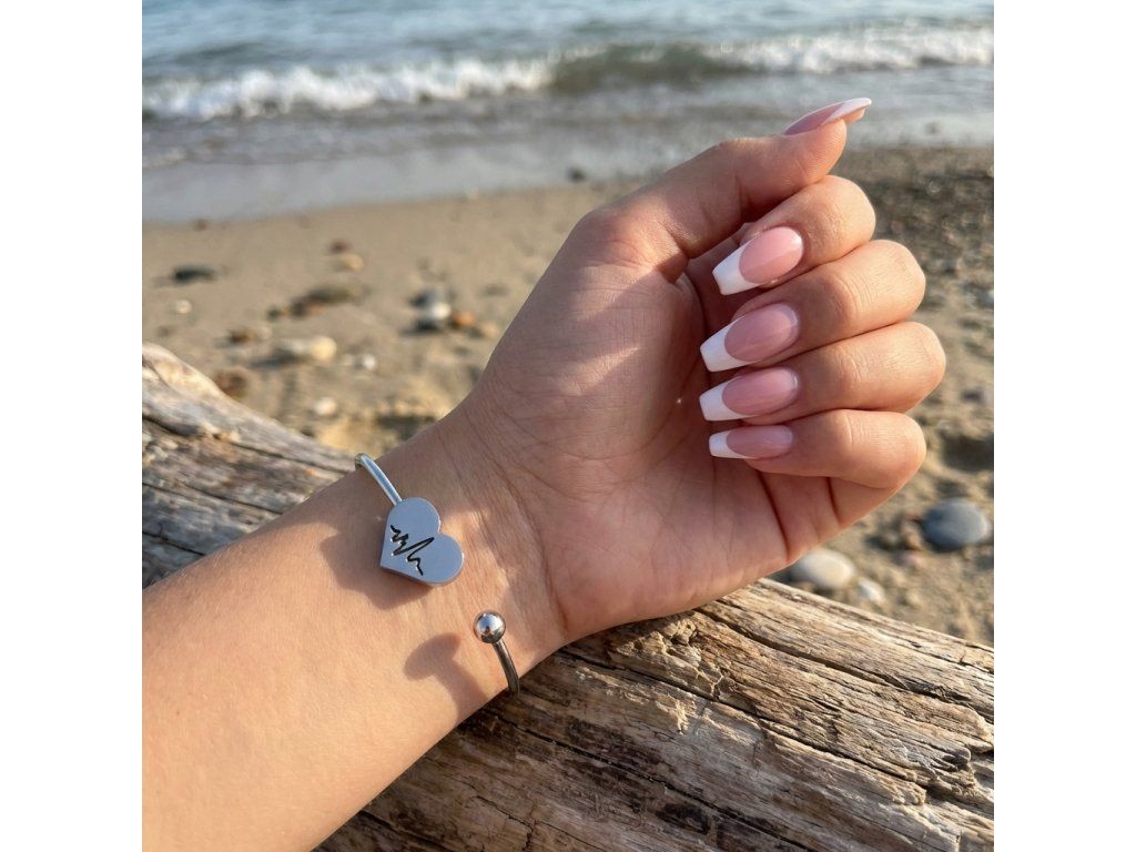 Náramok strieborný z chirurgickej ocele so srdiečkom + Darčekové balenie