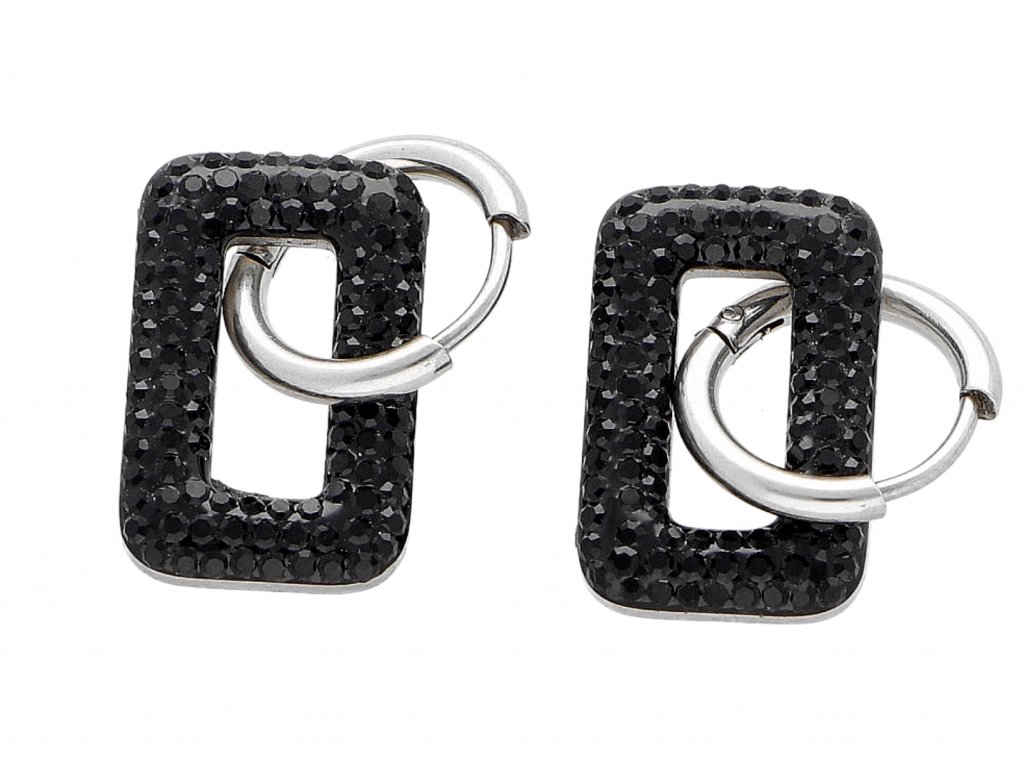 Náušnice čierne obdĺžničky z chirurgickej ocele so zirkónmi + Darčekové balenie