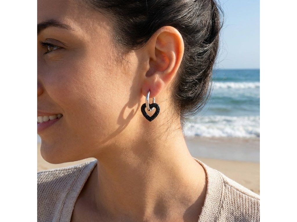 Náušnice čierne srdiečko z chirurgickej ocele so zirkónmi + Darčekové balenie