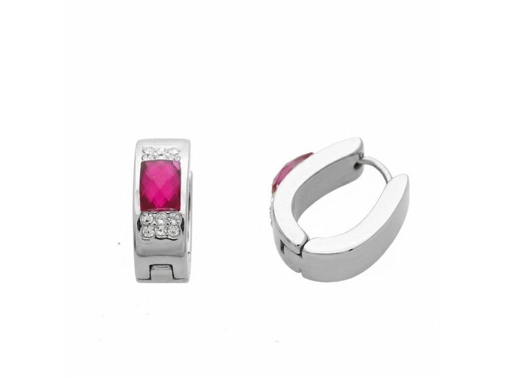 Náušnice oceľové v tvare U so skleneným prúžkom ružová + Darčekové balenie