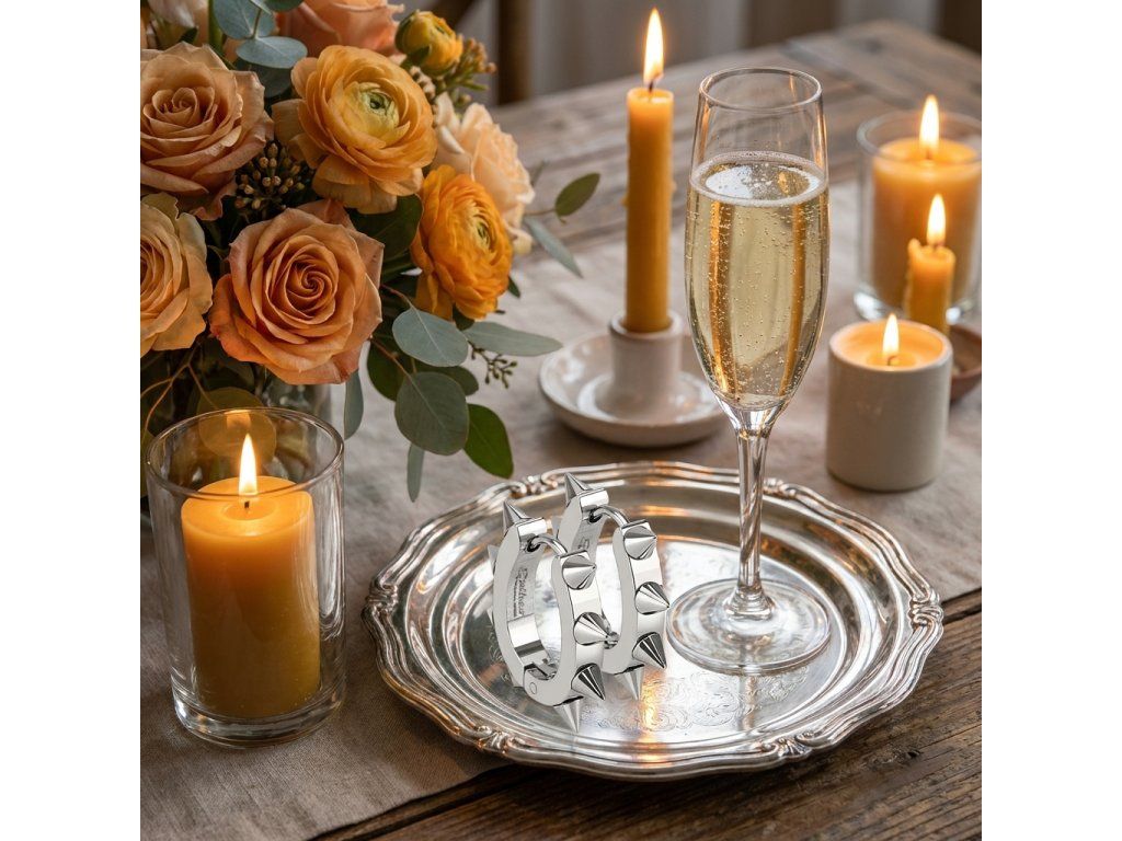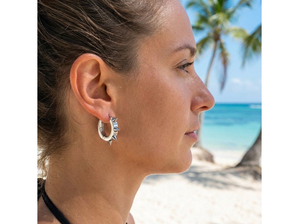 Oceľové náušnice - krúžky s ostňami + Darčekové balenie