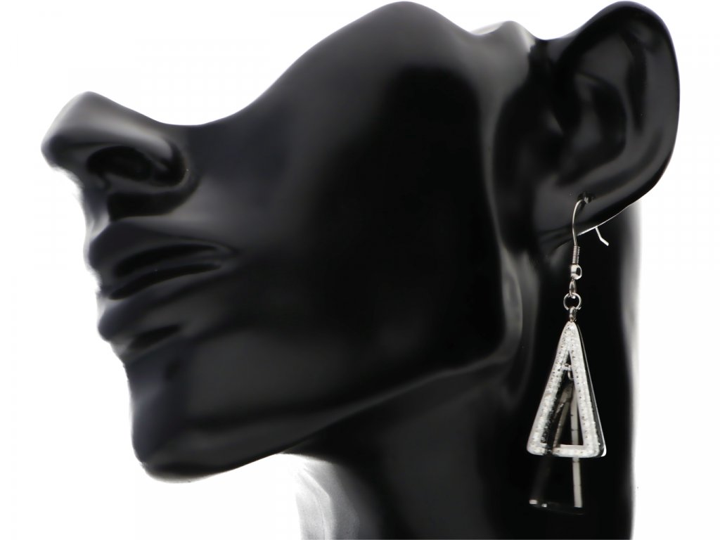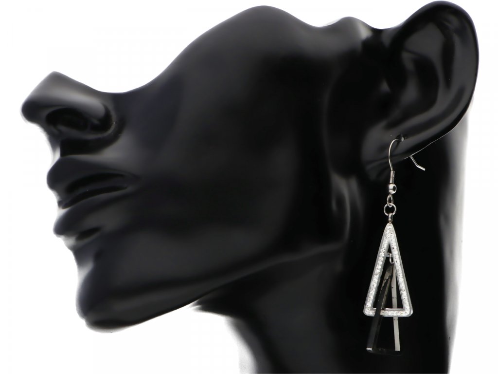 - náušnice sa skladajú z dvoch trojuholníkov visiacich pod sebou jeden trojuholník je osadený kamienkom