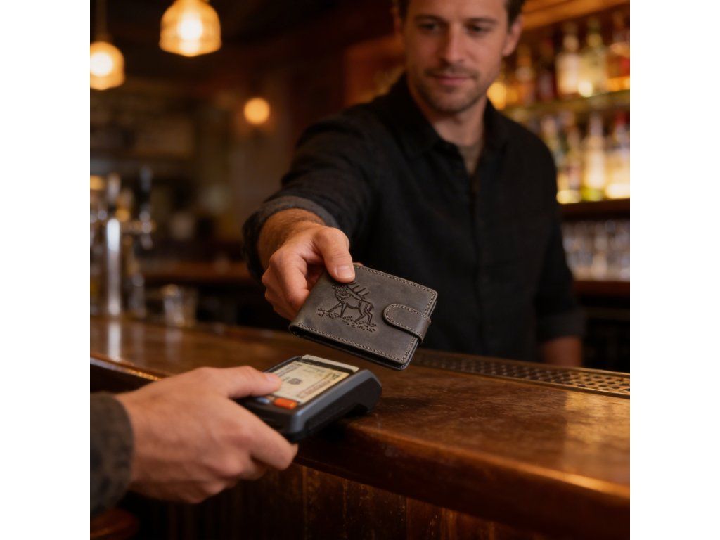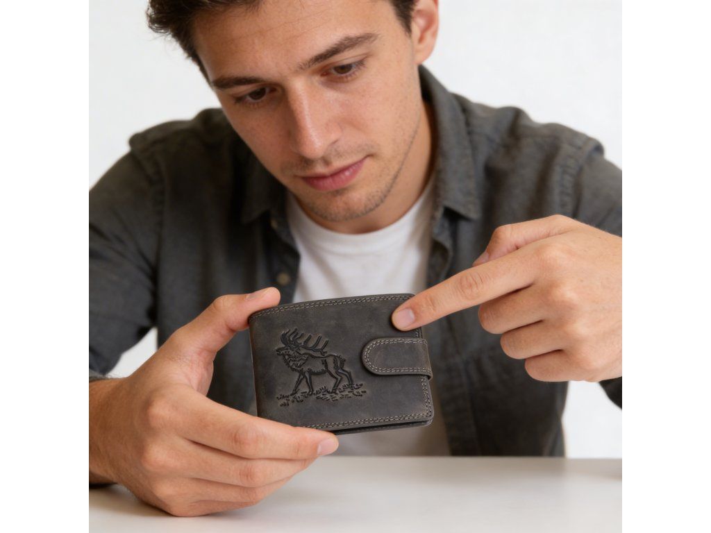 Pánska kožená peňaženka čierna s motívom Jelena