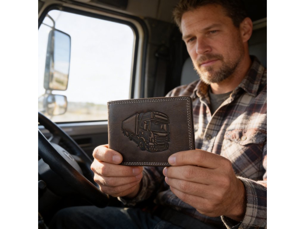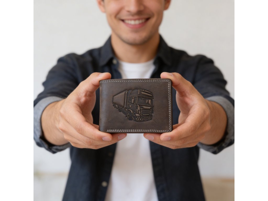 Pánska kožená peňaženka čierna s motívom Kamión