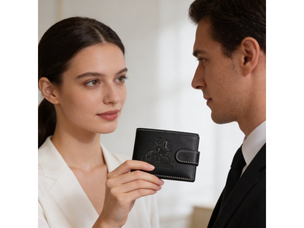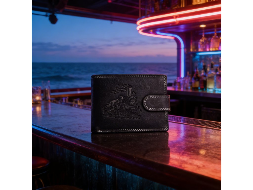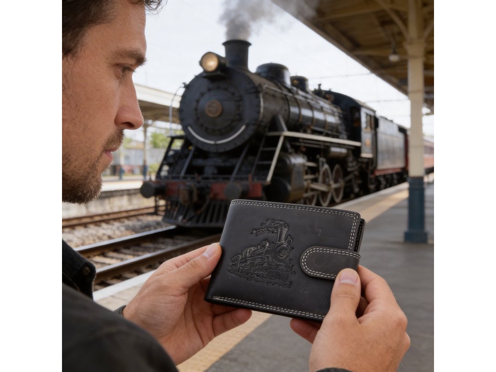 Pánska kožená peňaženka čierna s motívom Vlaku