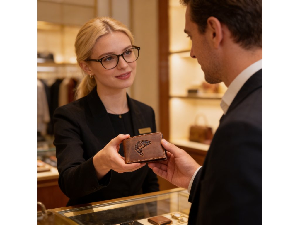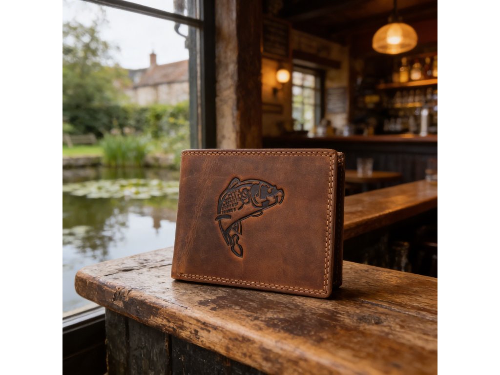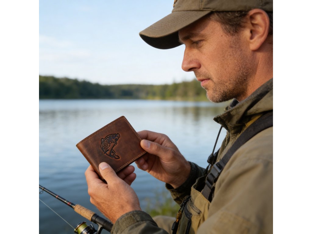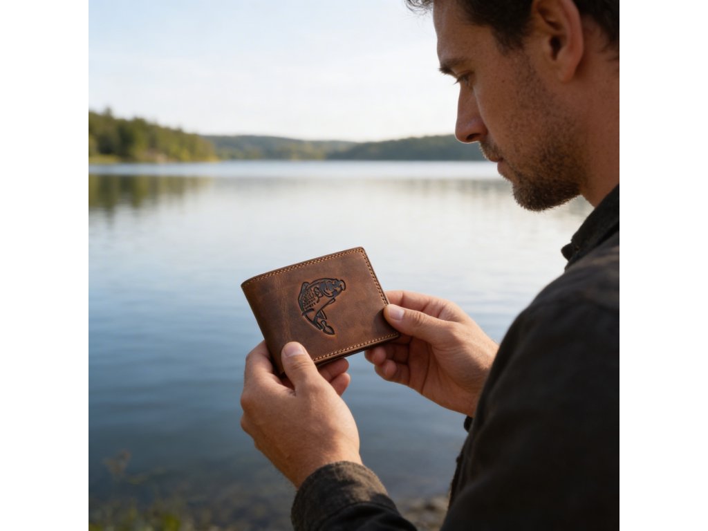 Pánska kožená peňaženka hnedá s motívom Kapra
