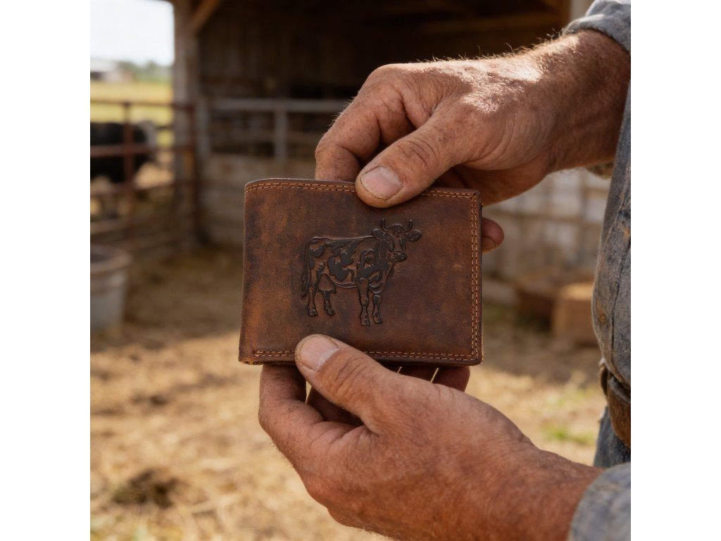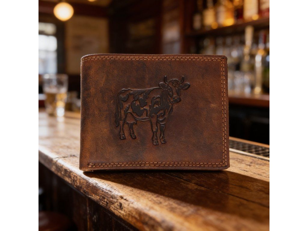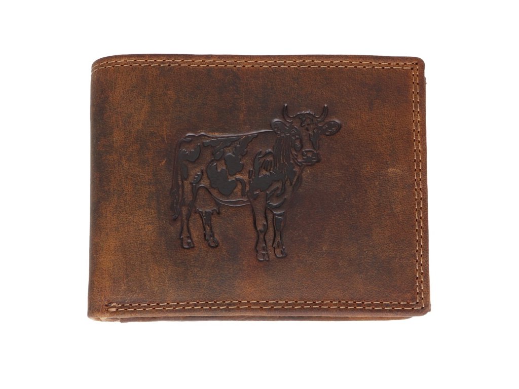 Pánska kožená peňaženka hnedá s motívom Kravičky