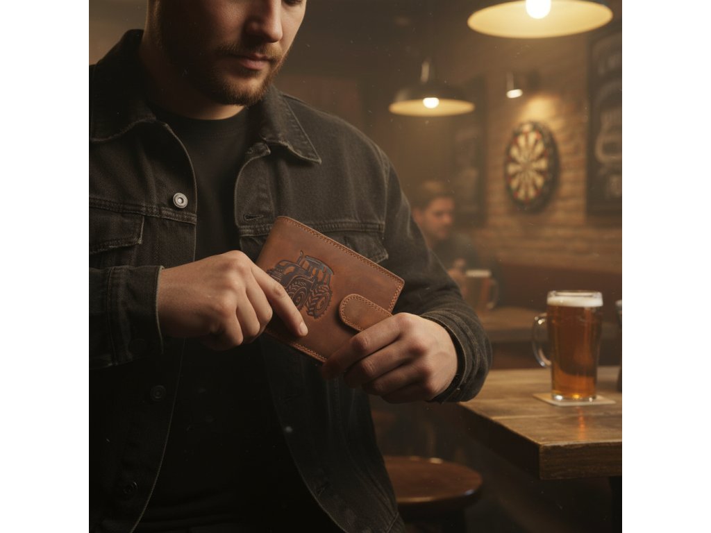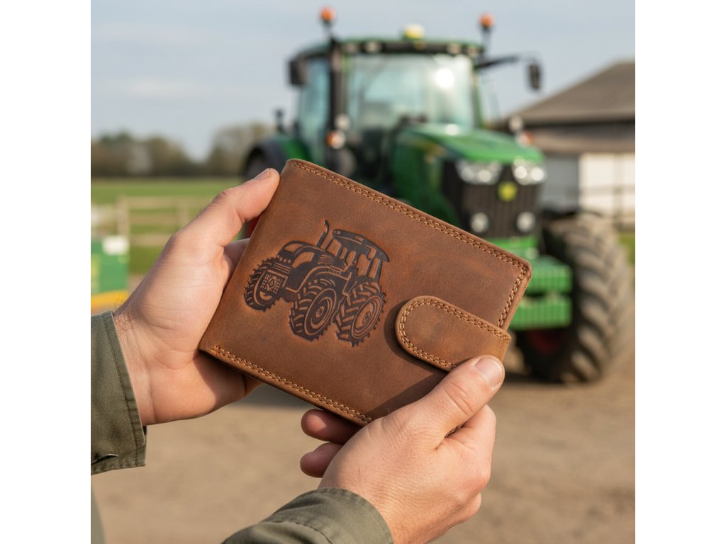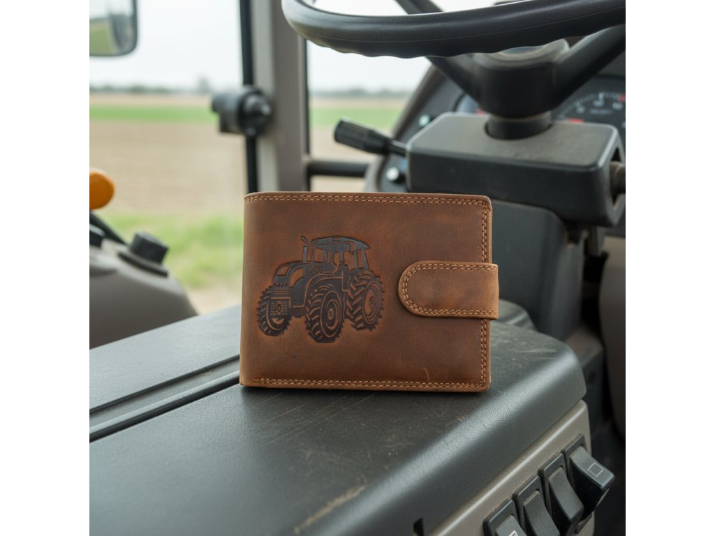 Pánska kožená peňaženka hnedá s motívom Traktor