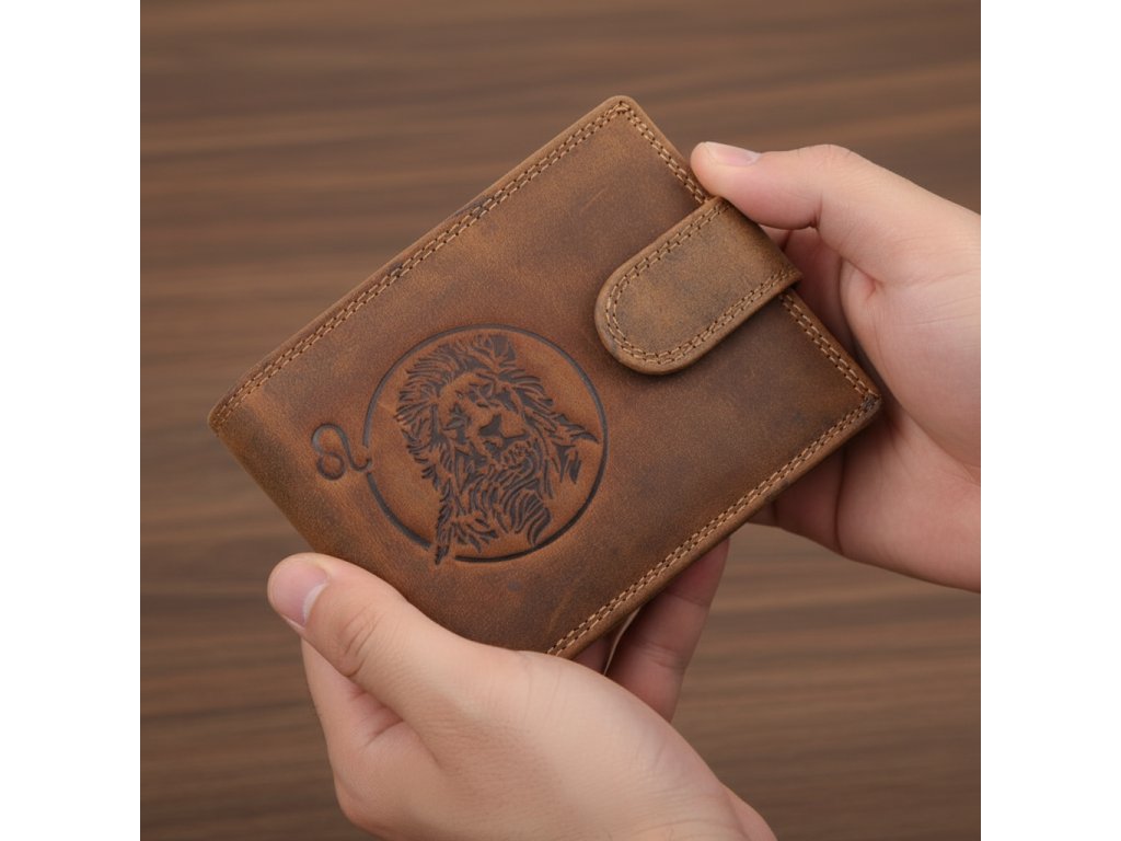 Pánska kožená peňaženka so znamením Lev