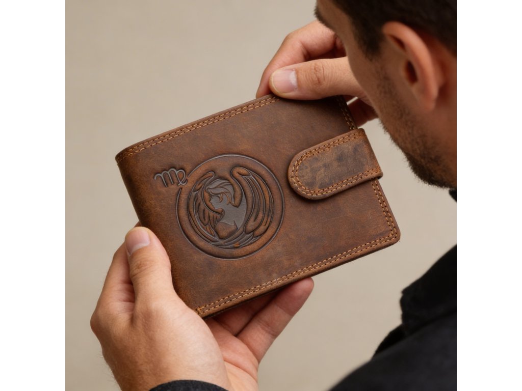 Pánska kožená peňaženka so znamením Panna