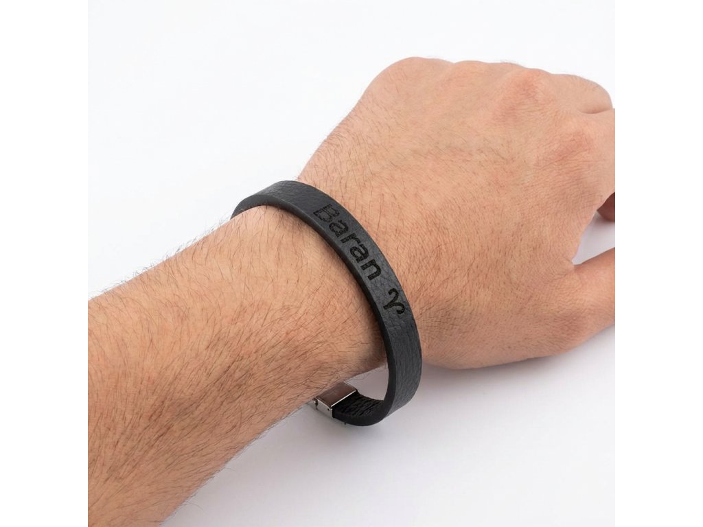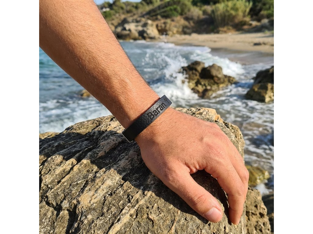 Pánsky kožený náramok čierny so znamením Baran + Darčekové balenie