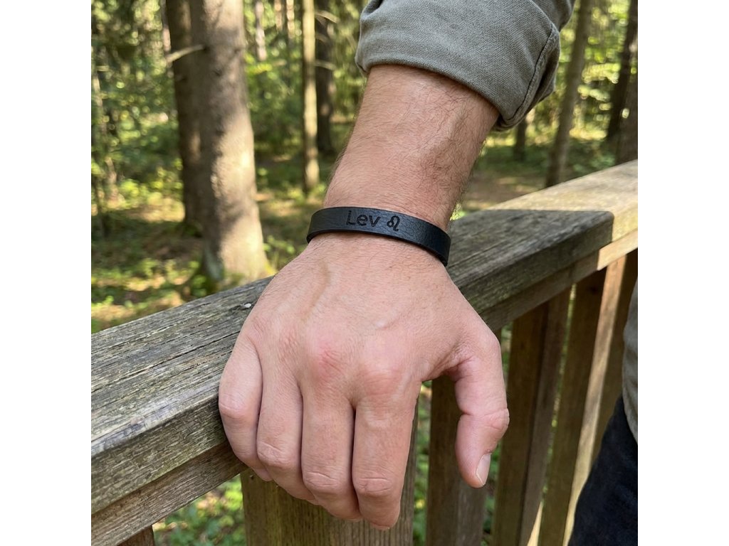 Pánsky kožený náramok čierny so znamením Lev + Darčekové balenie