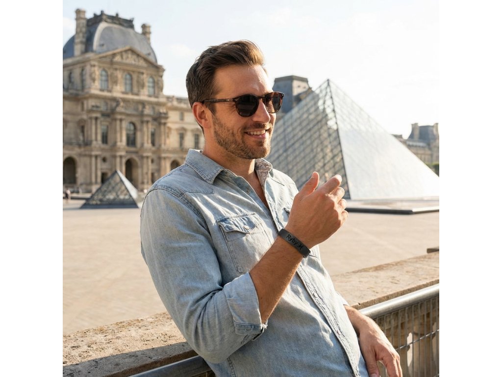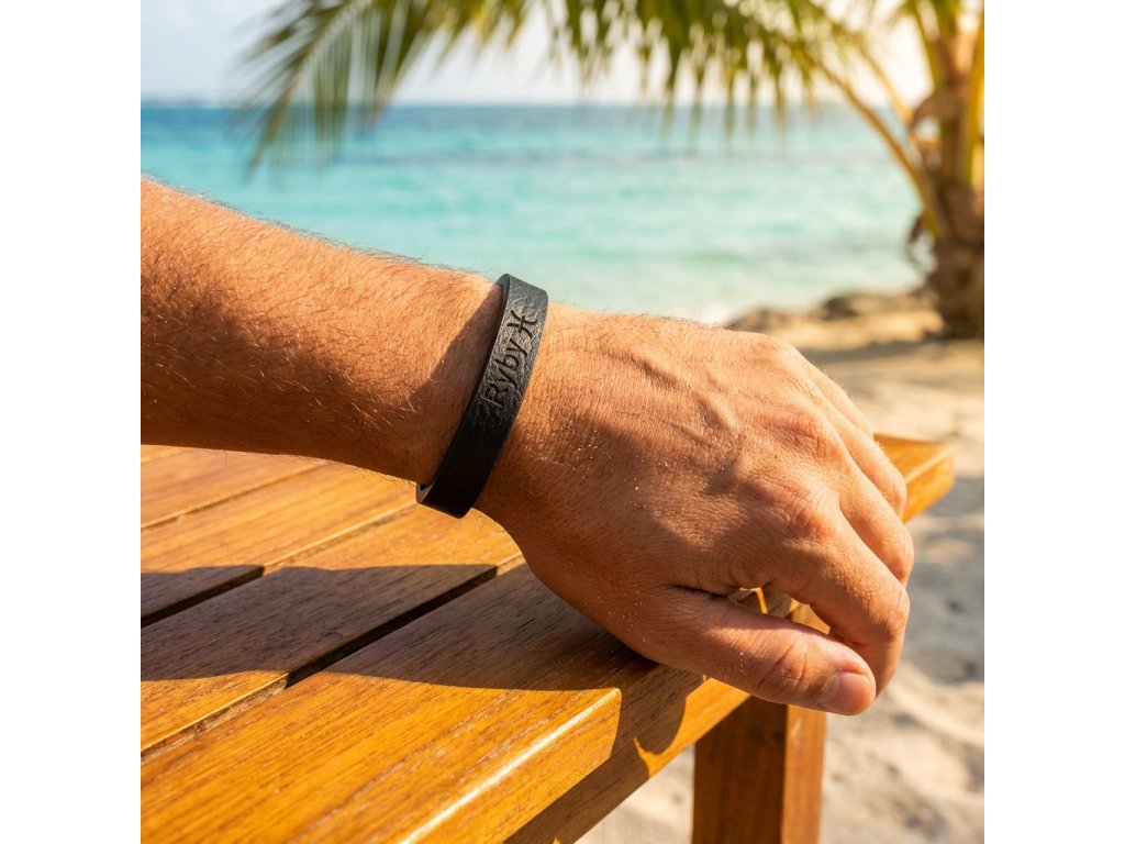 Pánsky kožený náramok čierny so znamením Ryby + Darčekové balenie
