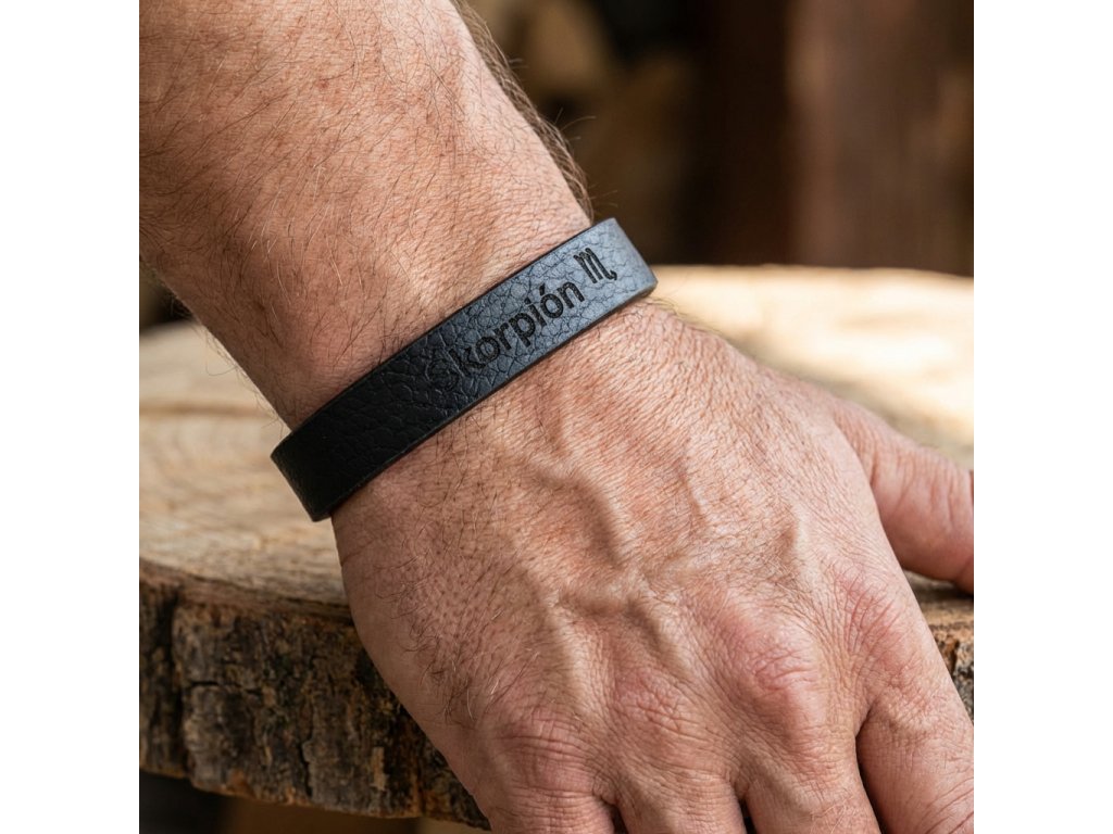 Pánsky kožený náramok čierny so znamením Škorpión + Darčekové balenie