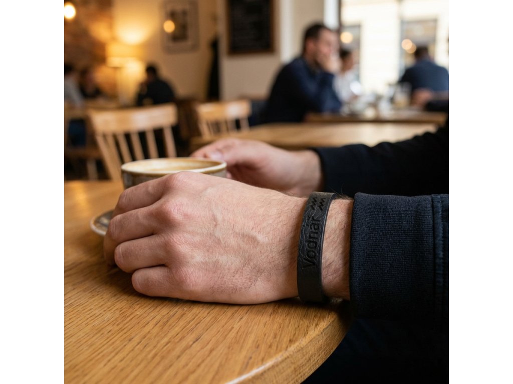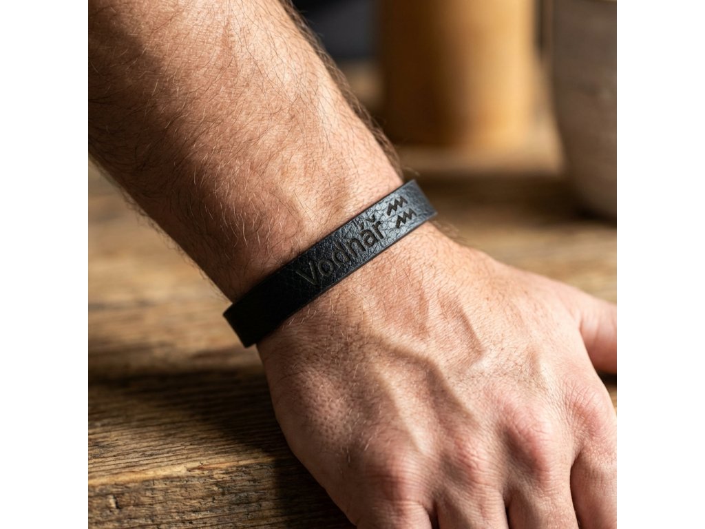 Pánsky kožený náramok čierny so znamením Vodnár + Darčekové balenie