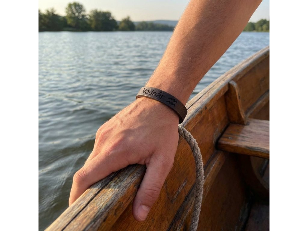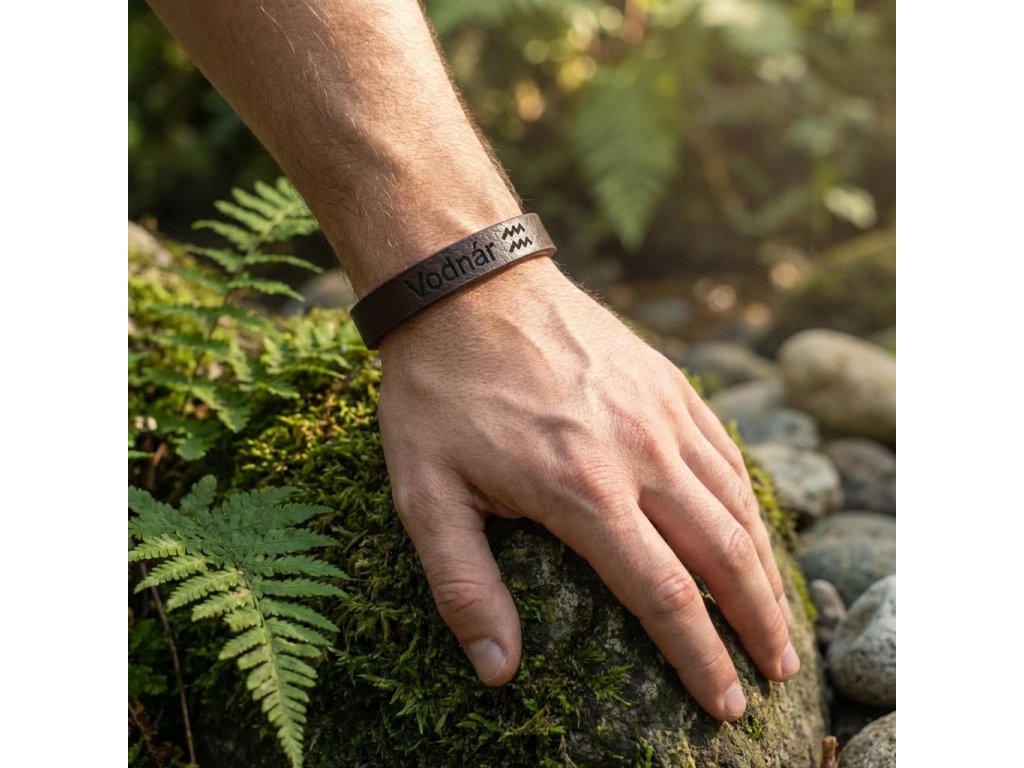 Pánsky kožený náramok hnedý so znamením Vodnár + Darčekové balenie