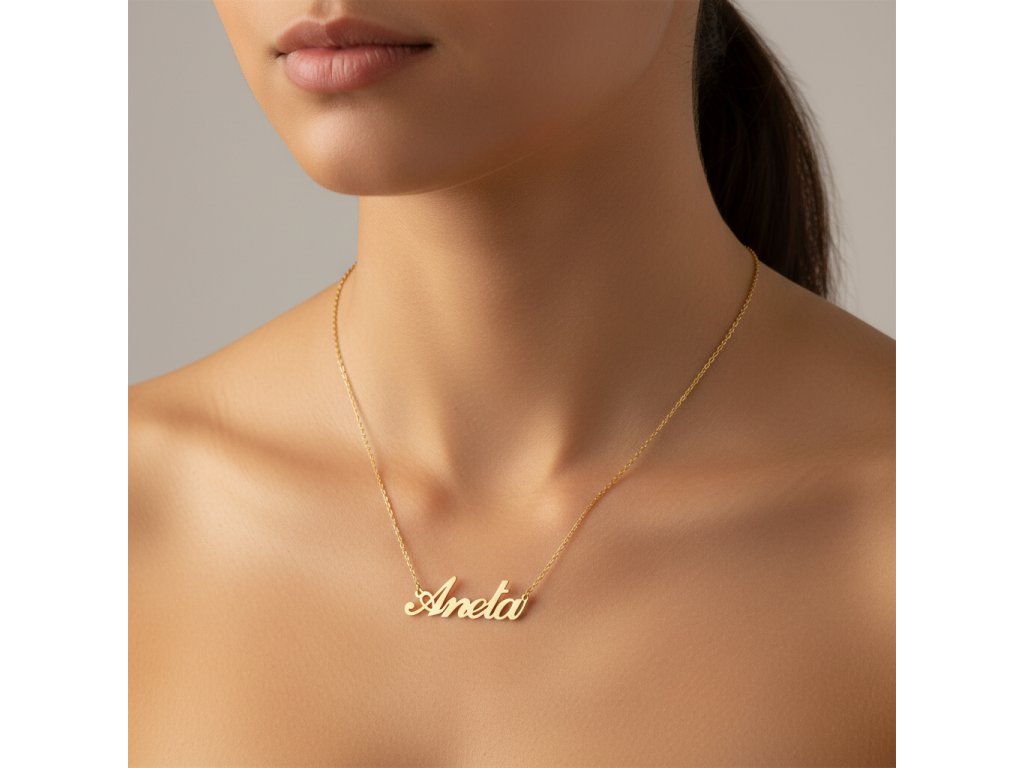 Retiazka z ocele s menom Aneta zlatá oceľ