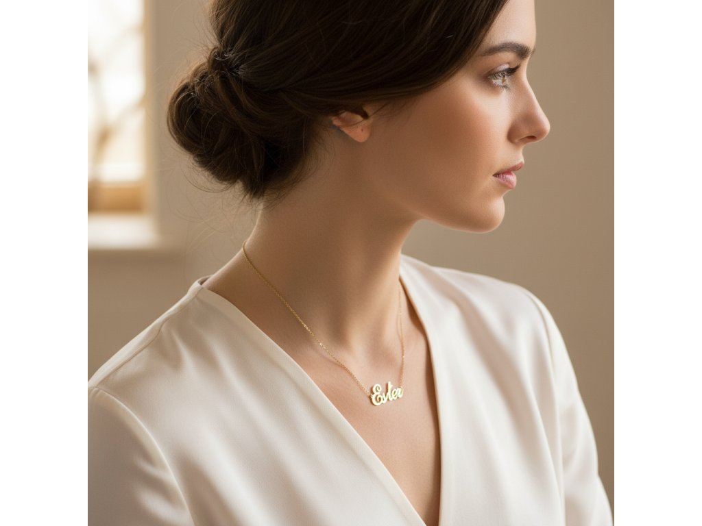 Retiazka z ocele s menom Ester zlatá oceľ