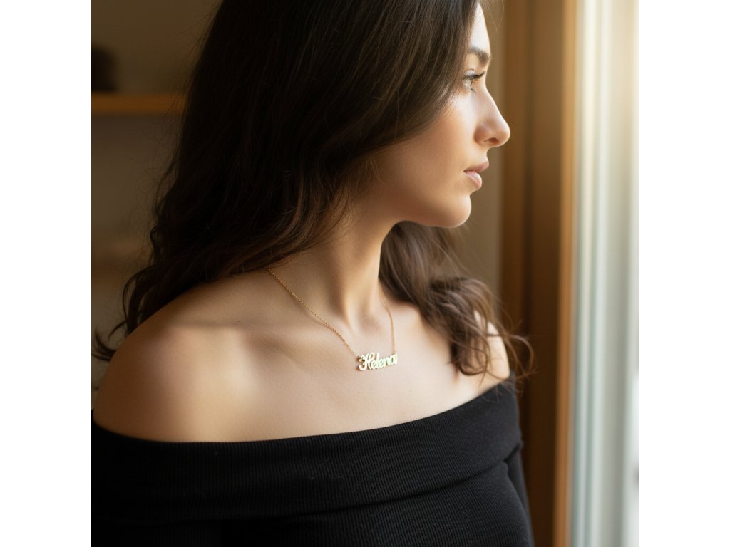 Retiazka z ocele s menom Helena zlatá oceľ