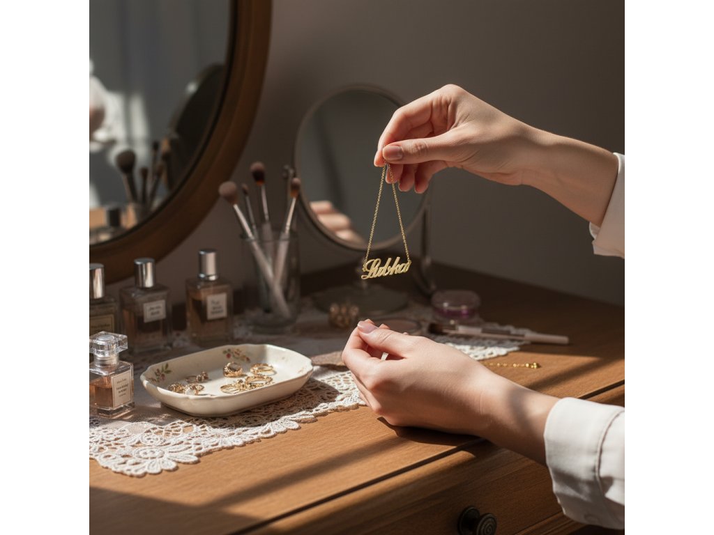 Celkový obvod tejto retiazky s menom sa pohybuje od 45 do 48 cm