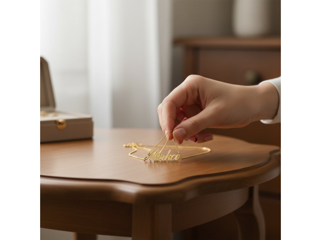 Celkový obvod tejto retiazky s menom sa pohybuje od 45 do 48 cm