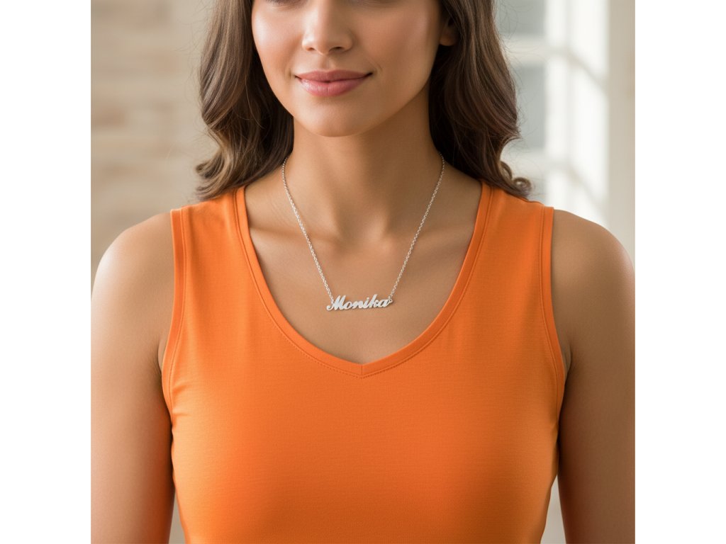 Retiazka z ocele s menom Monika strieborná + Darčekové balenie