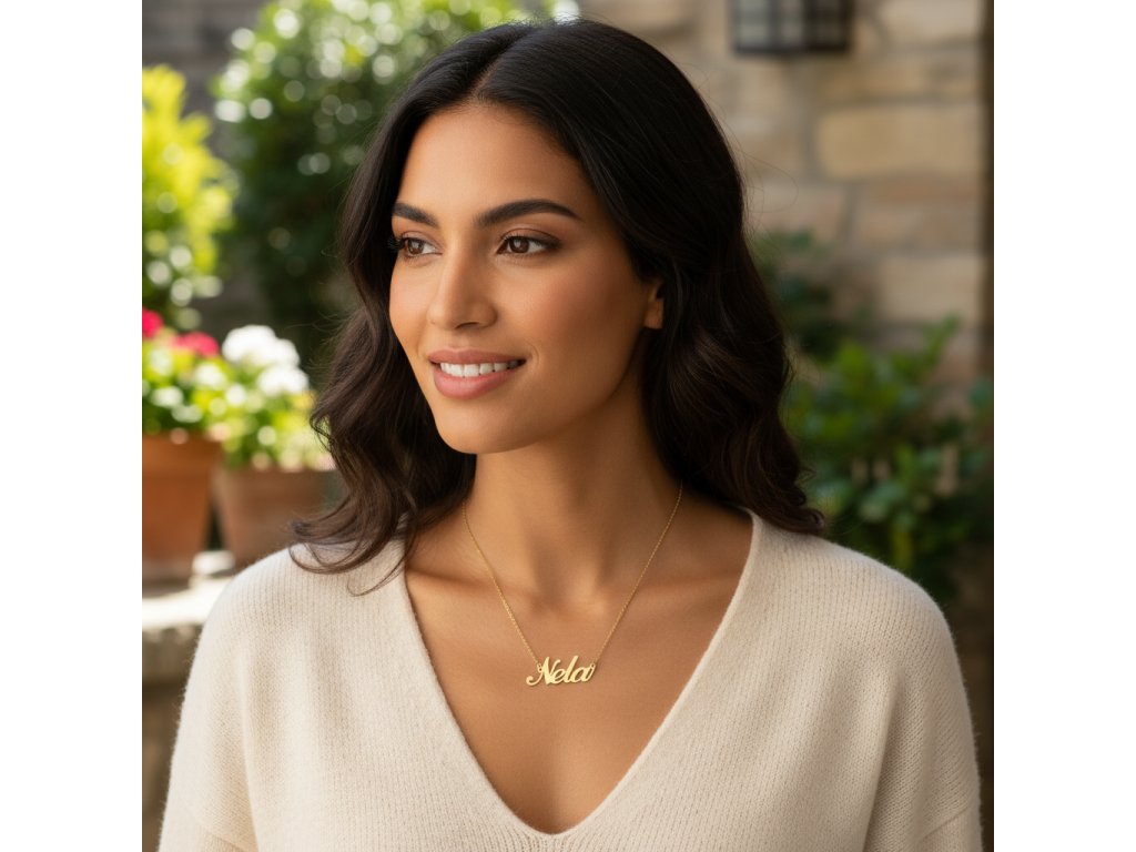 Retiazka z ocele s menom Nela zlatá oceľ