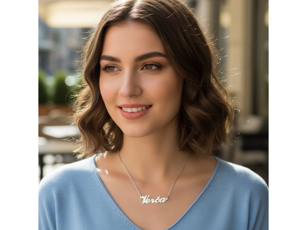 Retiazka z ocele s menom Verča strieborný + Darčekové balenie