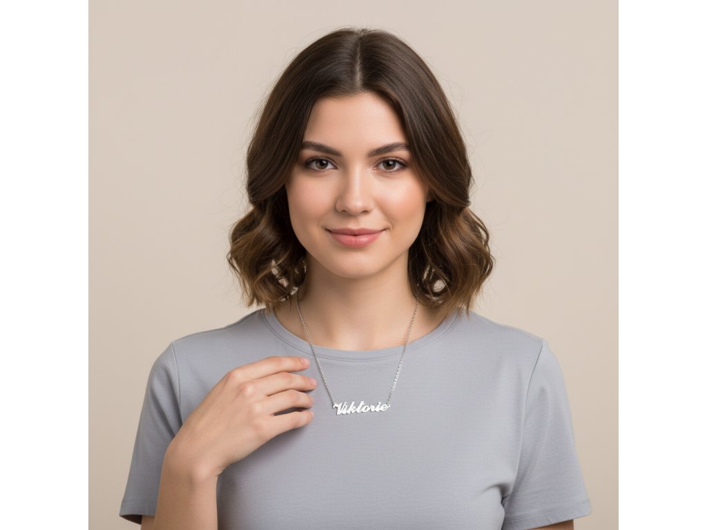 Retiazka z ocele s menom Viktorie strieborná + Darčekové balenie