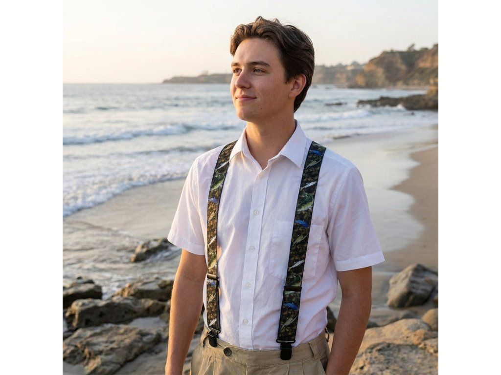 Tieto rybárske traky sú nevyhnutným doplnkom pre každého milovníka prírody. Ich dizajn s motívmi rýb a rieky prináša do vášho šatníka kúsok prírodnej elegancie.