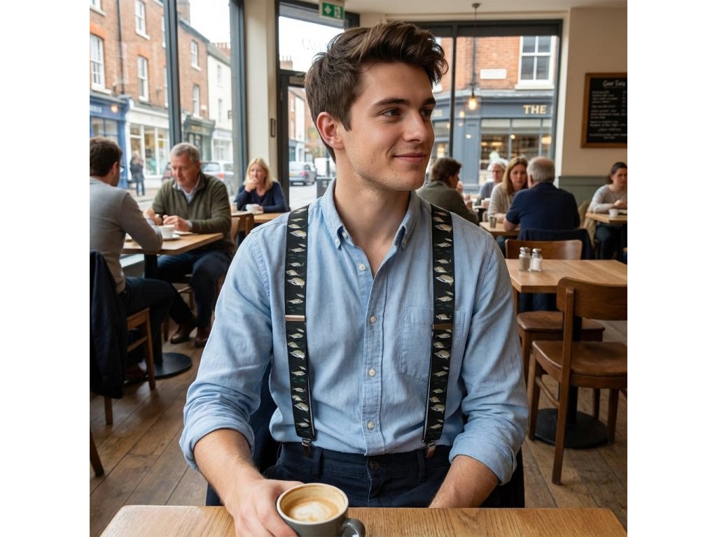 Tieto rybárske traky sú nevyhnutným doplnkom pre každého milovníka prírody. Ich dizajn s motívmi rýb a rieky prináša do vášho šatníka kúsok prírodnej elegancie.