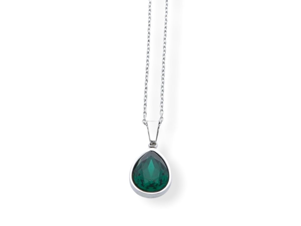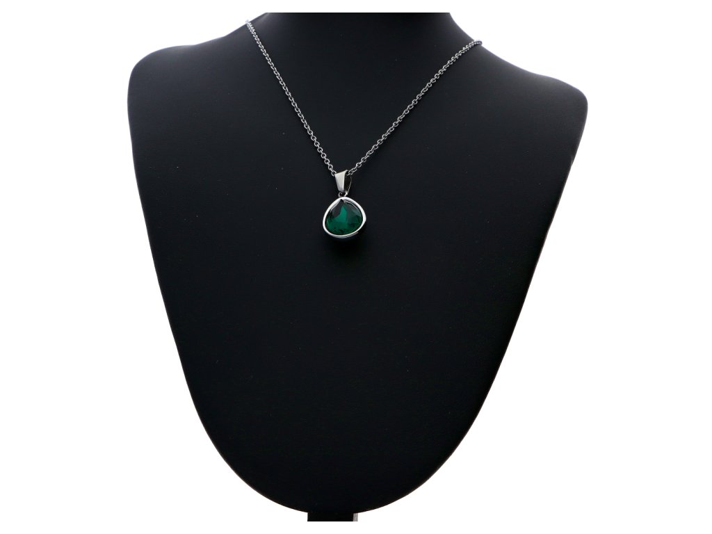 Smaragdová slza s retiazkou, chirurgické oceľ + Darčekové balenie