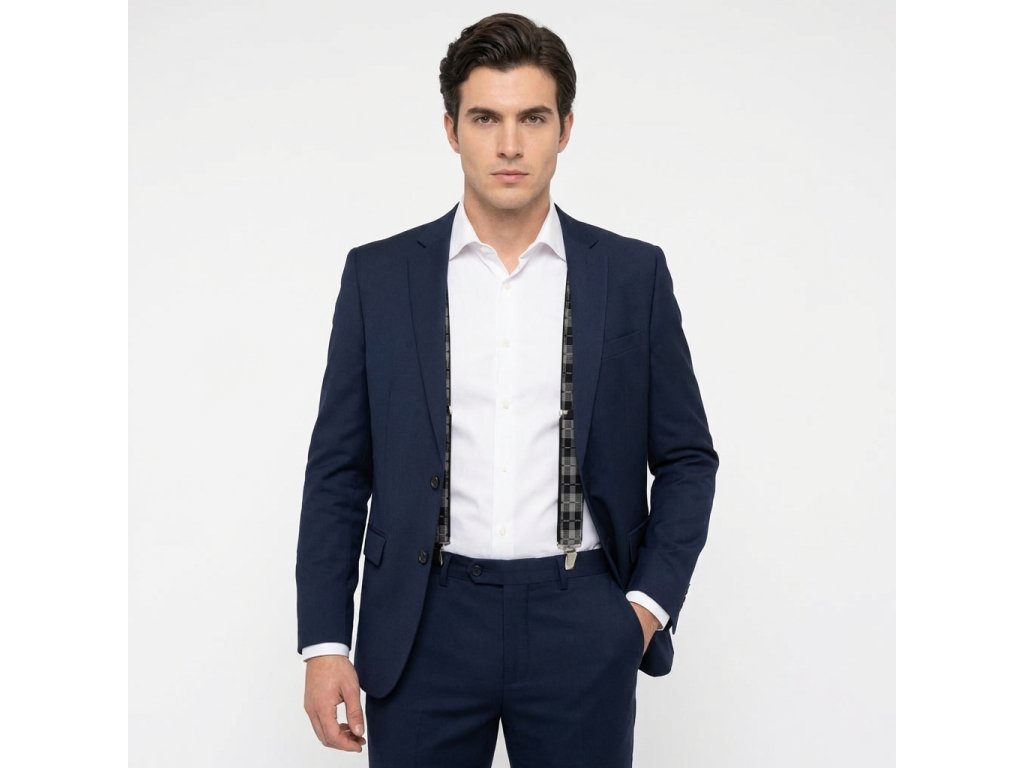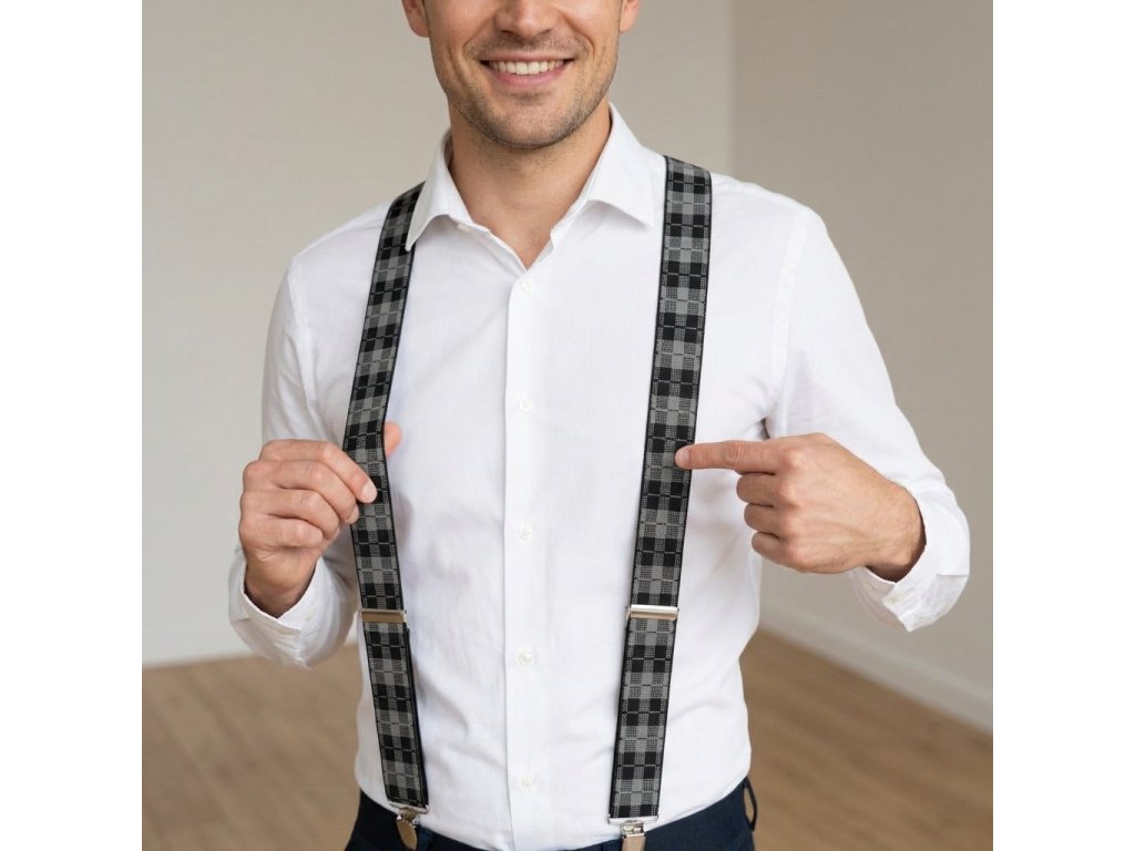 Traky pánske, čierno - šedé káro MB2040