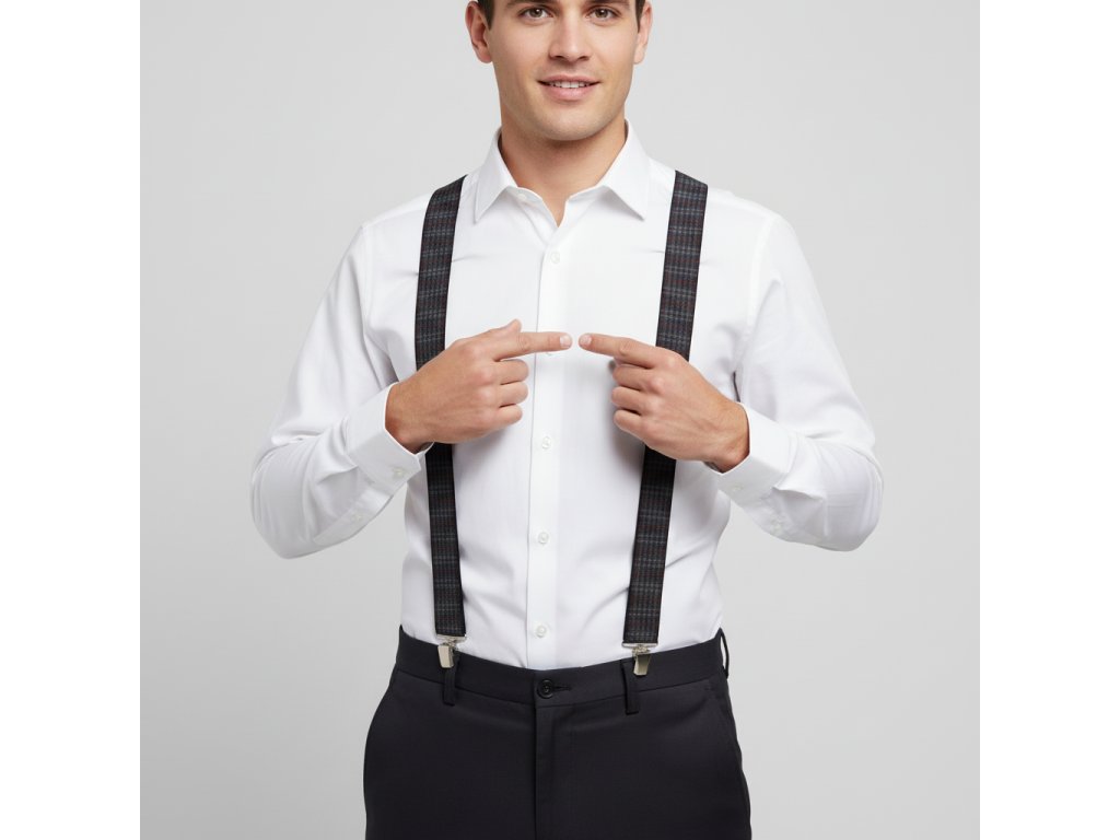 Traky pánske, čierno - šedé káro MB2042
