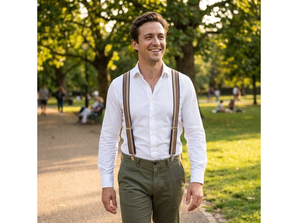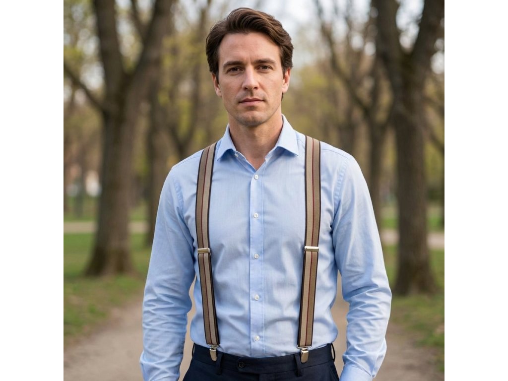Traky pánske, hnedé pruhované MB2051