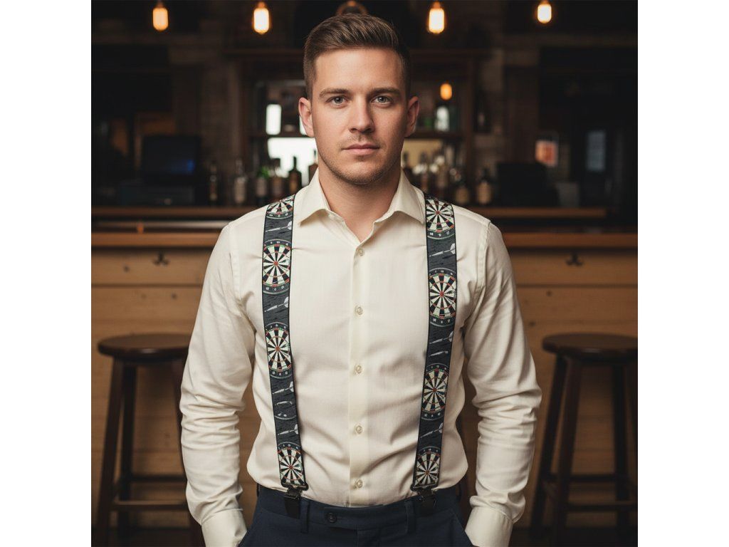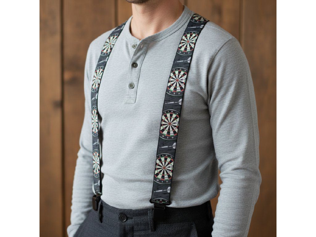 Tieto traky sú nevyhnutným doplnkom pre každého milovníka spoločenskej hry šípok. Ich dizajn s motívom spoločenskej hry prináša do vášho šatníka kúsok turnaja v šípkach.