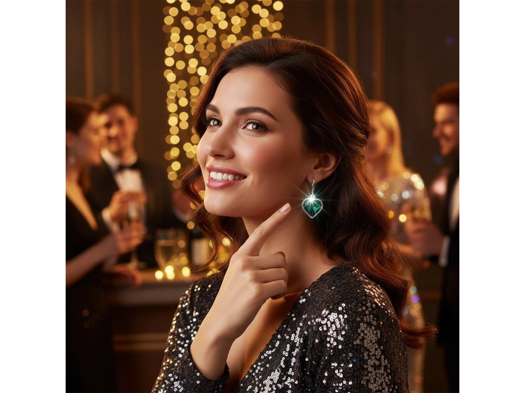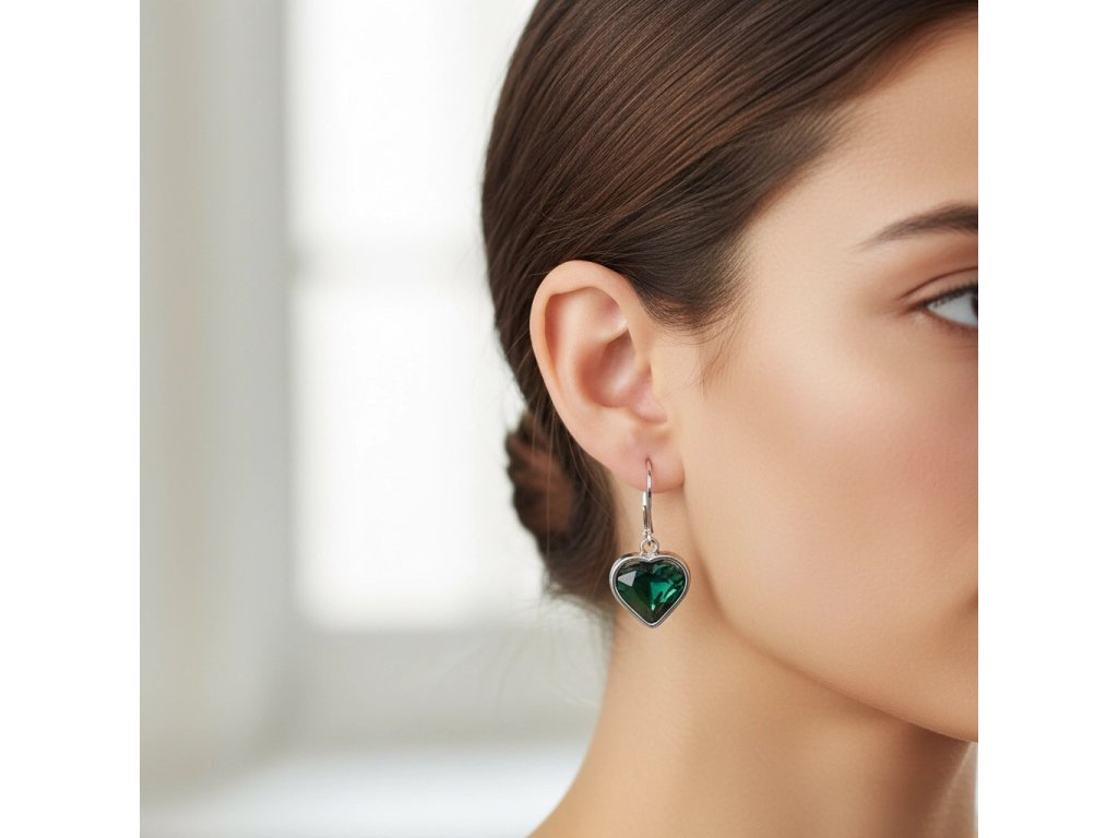 Zelené náušnice srdiečko z chirurgickej ocele SD755 + Darčekové balenie